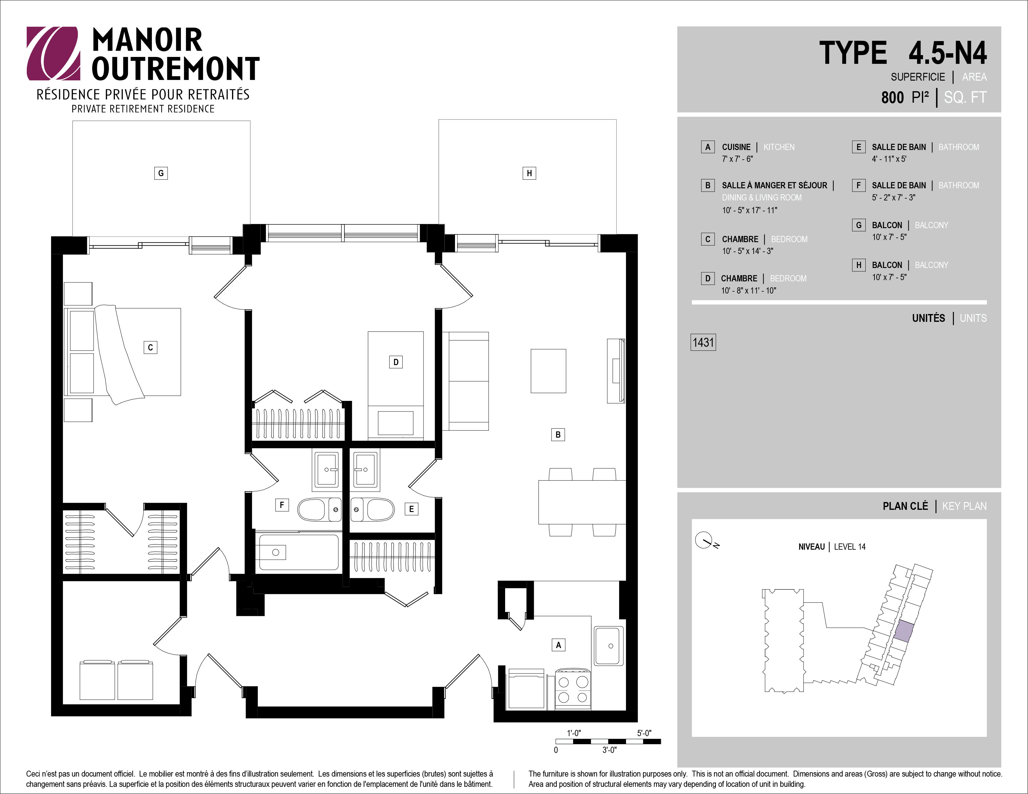 *Disponibilité des appartements à valider auprès de votre conseiller en location. Unité réconfort disponible. Des frais supplémentaires sont applicables sur certains appartements, dans le cas où l’ajout de services est obligatoire. Les prix pourraient être modifiables sans préavis.